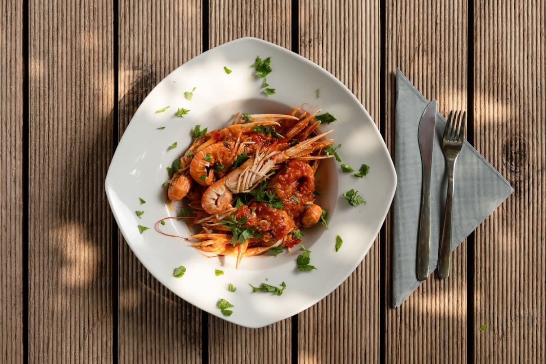 The restaurant specializes in Mediterranean and Croatian cuisines, with a menu featuring dishes such as scampi, branzino, calamari, and various seafood options. Guests praise the quality of the food, authentic ambiance and great hospitality.